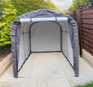 A simple Garden Shelter for storing bikes, mobility scooters, garden tools & more.